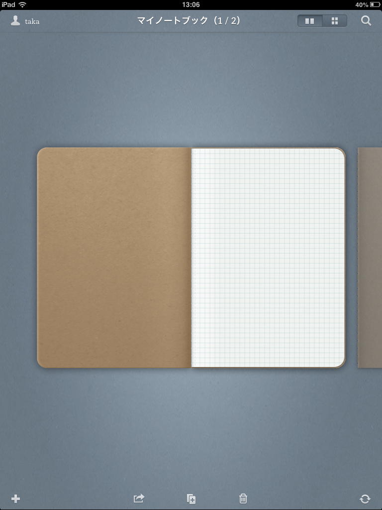 ツールバーをフリックするだけで、ノートを1枚追加できるので、